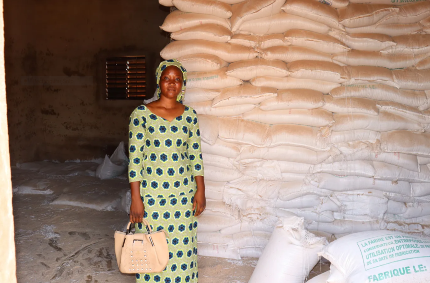 To get her business back on track, Ouedraogo contacted several microfinance institutions to obtain a loan. Unfortunately, as with millions of women in Burkina Faso’s rural areas, Ouedraogo’s access to adequate and timely financial services is limited or non-existent. The loans she was offered consistently fell short of covering the cost of 5 tonnes of wheat needed to kickstart her business’ recovery.